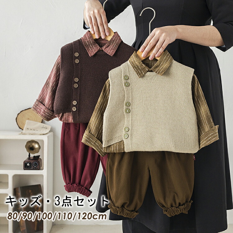 キッズファッション 男の子 セットアップ 3点セット 春秋 ベビー服 かわいい 上下セット 子供服 80 90 100 110 120cm キッズ 重ね着 ガールズ カジュアル パーティー 誕生日 プ
