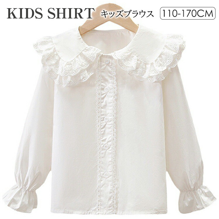 子供服 シャツ 女の子 ブラウス ホワイト 白 長袖 春秋 キッズ カットソー トップス 無地 レース ジュニア 110 120 130 140 150 160 170cm 通園 通学 発表会 フォー