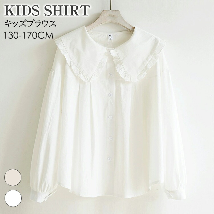 子供服 女の子 ブラウス シャツ カットソー ホワイト 白 ベージュ 長袖 キッズ トップス 無地 春秋 ジュニア 130 140 150 160 170cm 通学 発表会フォーマル かわいい フリル