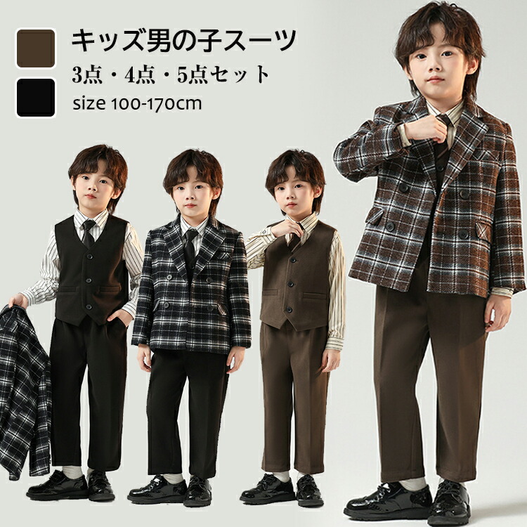 男の子スーツ 子供スーツ キッズ スーツ フォーマル チェック柄 七五三 結婚式 ピアノ発表会 ステージ衣装 パーティー ジュニア フォーマルウェア 入学式 卒業式 卒園式 子供服 学生 10