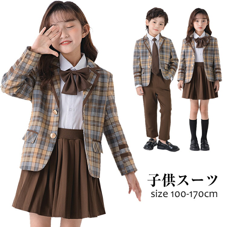 子供スーツ キッズ スーツ 男の子 女の子 チェック柄 フォーマル 七五三 結婚式 面接 ジュニア フォーマルウェア スーツ一式 入学式 卒業式 入園式 卒園式 子供服 学生 インナーパンツ付