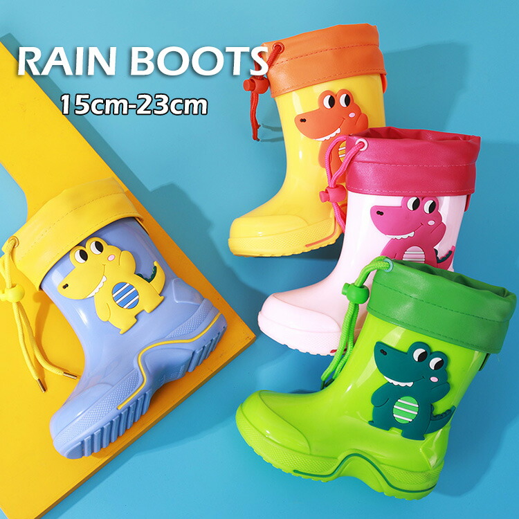 キッズ レインブーツ 恐竜柄 子供 長靴 レインシューズ 男の子 女の子 滑り止め 入学 入園 雨の日 梅雨 かわいい 雨靴 15cm 16cm 17cm 18cm 19cm 20cm 21cm 22
