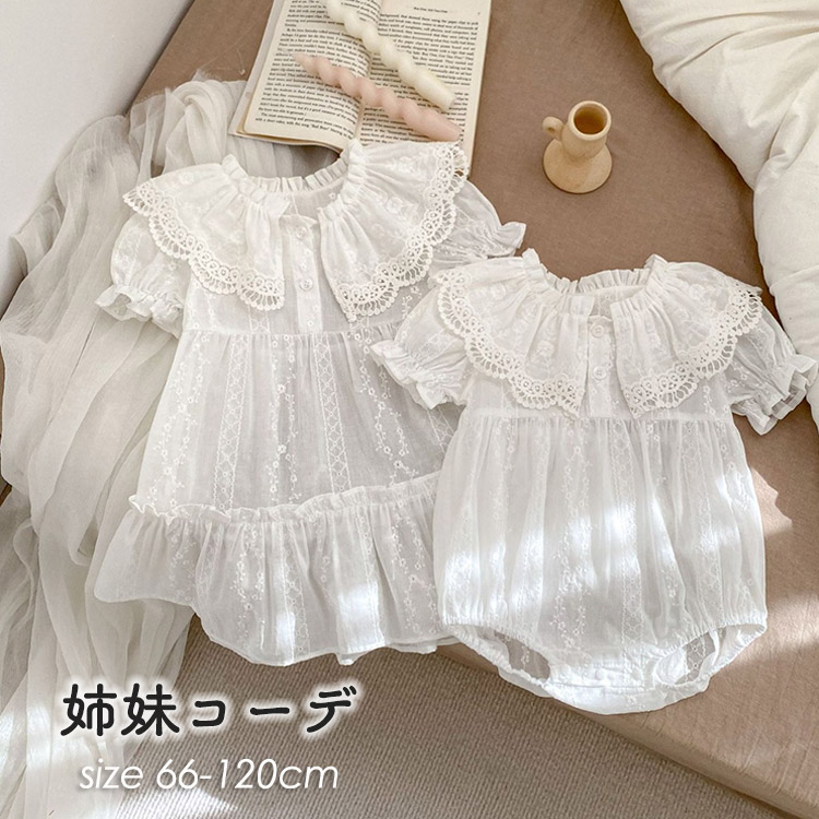 リンクコーデ 姉妹 友達 お揃い ベビー服 姉妹コーデ ロンパース ワンピース ドレスフォーマル ペアルック ペアコーデ 半袖 66 73 80 90 100 110 120cm 春夏 キッズ 女児