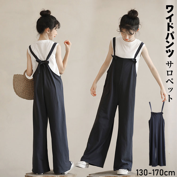 ジュニア女の子用お洒落なサロペット ワイドパンツ!コーデしやすいとてもおしゃれです
