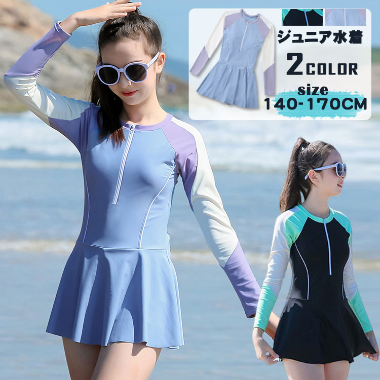 子供 水着 女の子 長袖 高校生 中学生 小学生 ジュニア キッズ スクール水着 140cm 150cm 160cm 170cm シンプル スポーティー 露出控えめ 日焼け対策 プール 海 ビ