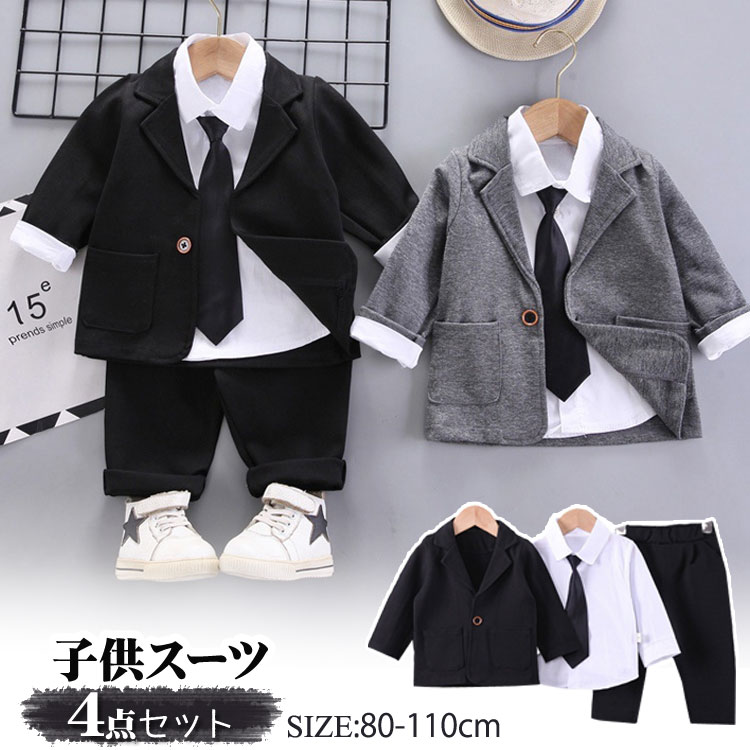 男の子向け スーツ 80-110 普段着にもフォーマルにもオーケー セットアップ フォーマルスーツ ブラック グレー 小中学生 入(卒)園式 入学(卒業)式