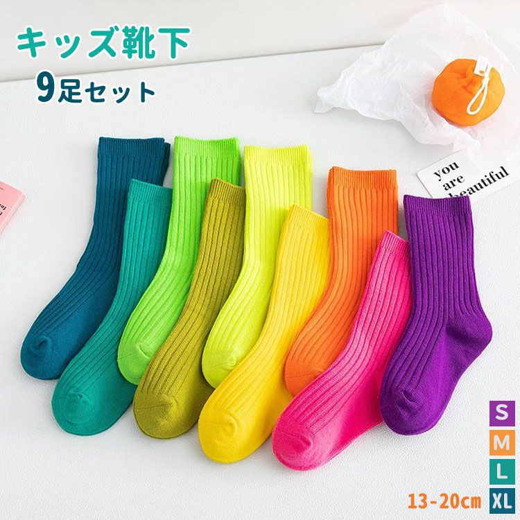 キッズ 靴下 子供 9足セット ソックス 女の子 男の子 無地 おしゃれ カラフル かわいい ベビー ジュニア くつした 保育園 幼稚園 通園 通学 子供ソックス ボー
