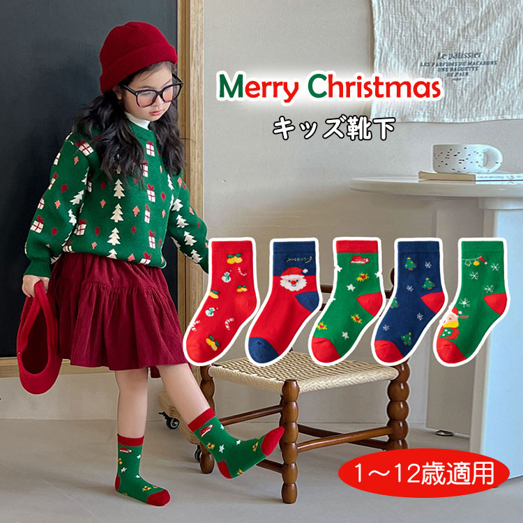 クリスマス キッズ 靴下 ソックス コットン 女の子 男の子 子供用 かわいい ベビー 子供用ソックス 幼稚園 小学生 ジュニア 学生 吸汗 柔軟性 男女兼用 1~12歳 プレゼ