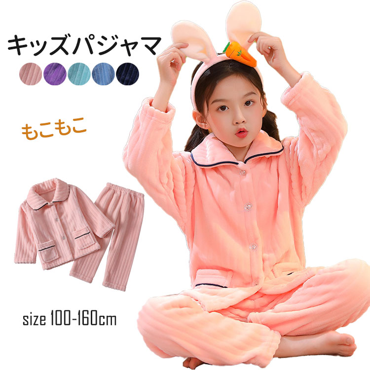 ルームウェア 長袖 長パンツ ボア もこもこ パジャマ キッズ 女の子 男の子 冬用 子供 トップス ボトムス 2点セット 防寒対策 省エネ対策 かわいい セットアップ 部屋着 軽量 暖かい 100