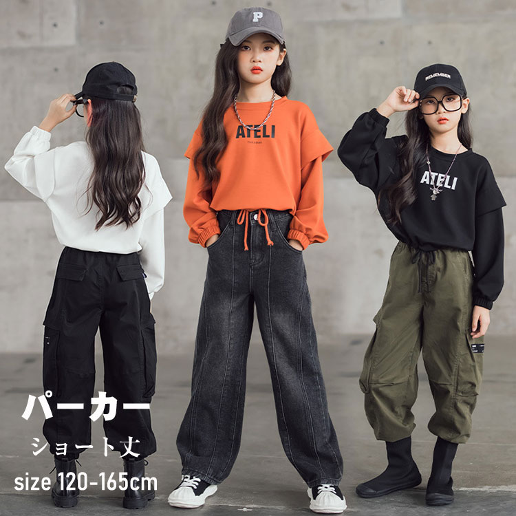 デニムパンツ カーゴパンツ キッズ 女の子 ジーンズ 子供 ロングパンツ 長ズボン ワイドパンツ ジーパン デニム ジュニア ゆったり ゴムウエスト ポケット多い おしゃれ ファッション カジュアル