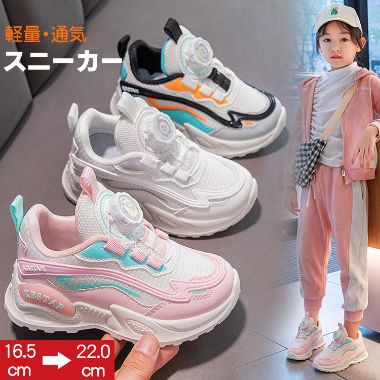 子供靴 スニーカー メッシュ 春秋 キッズ シューズ 靴 通気 軽量 ジュニア 学生用 女の子 男の子 紐なし 着脱簡単 滑り止め 履きやすい 3色 ホワイト ピンク ブルー 16.5-22cm