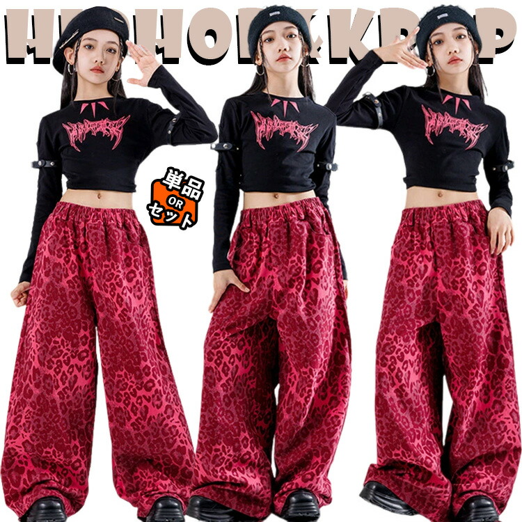 レオパード柄 上下セット チア チアガール キッズ ダンス衣装 ショートトップ 長袖 女の子 ワイトパンツ カジュアル ゆったり セット ジャズダンス jazz 韓国K-POP HIPHOP 子供服