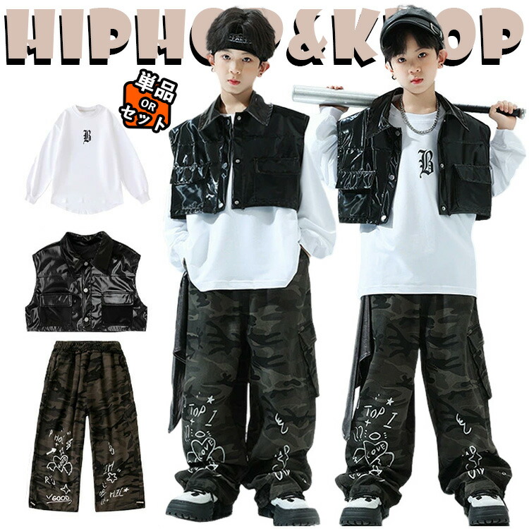 革パンツ ブラック ベースボールシャツ シルバー キッズ ダンス衣装 セットアップ 女の子 男の子 半袖シャツ カーゴパンツ ワイドパンツ かっこいい かわいい おしゃれ 演出服 発表会