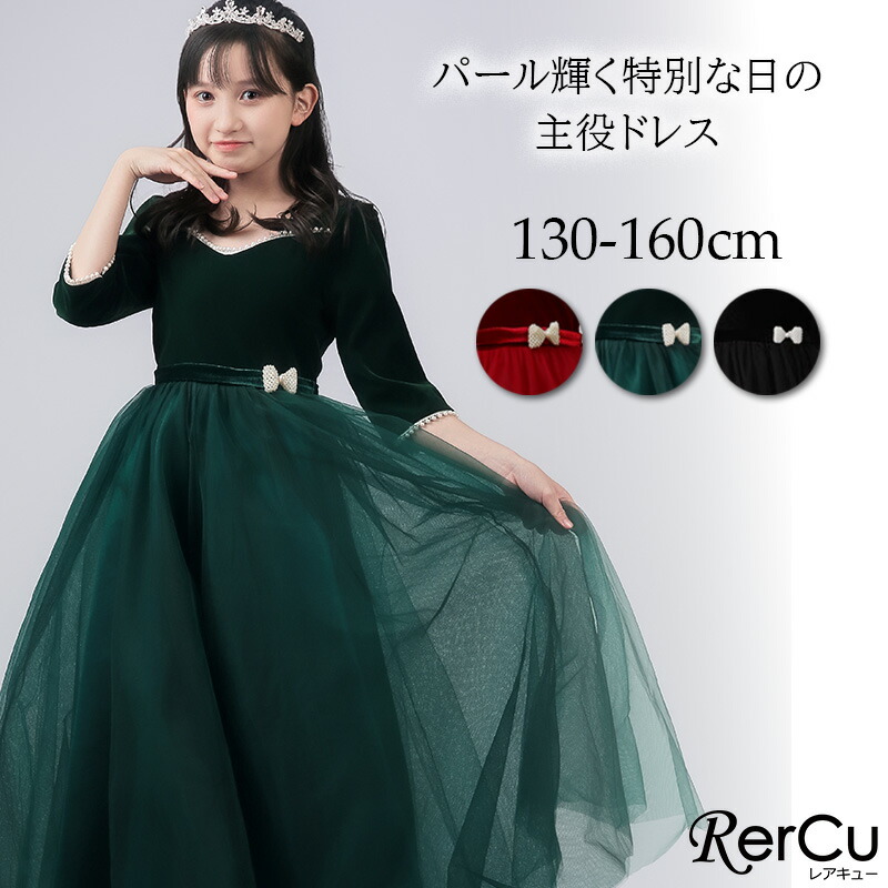 子どもドレス 子供 ロングドレス 女の子フォーマルドレス Aラインのシンプルな発表会向けドレス 160 150 140 130