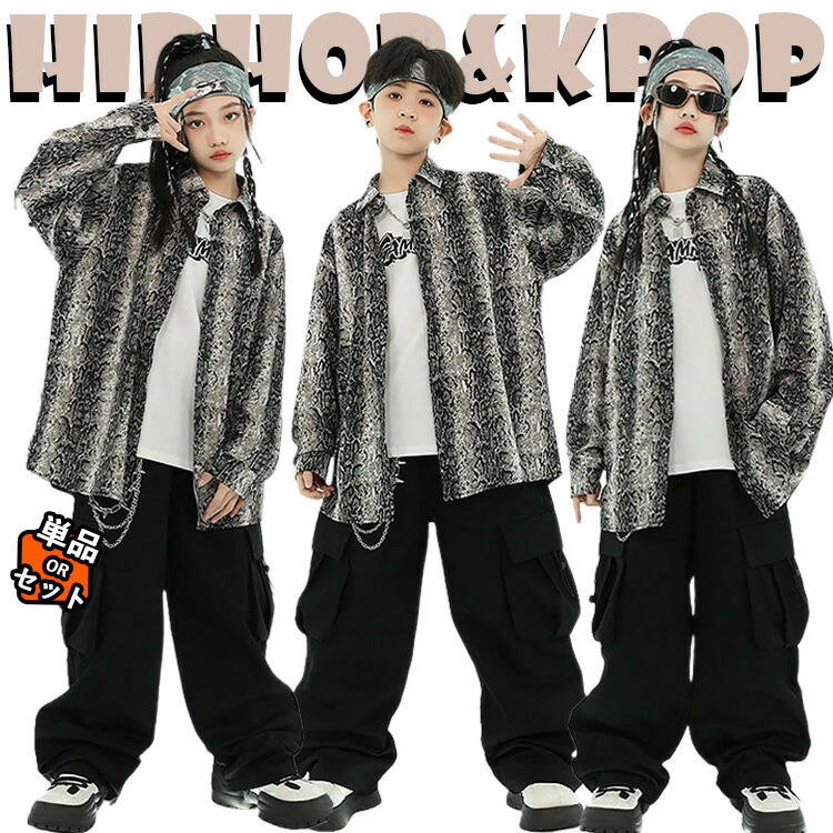 ヒョウ柄 豹柄 カジュアルシャツ ブラック カーゴパンツ シャツ キッズ ダンス衣装 セットアップ 上下セット おしゃれ 女の子 男の子 かっこいい ゆったり 灰 トップス ダンスウエア