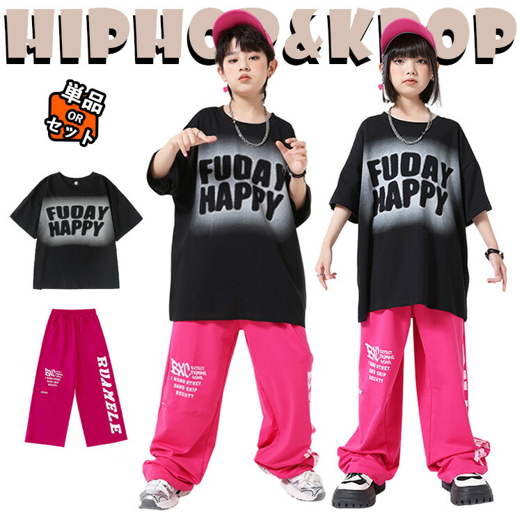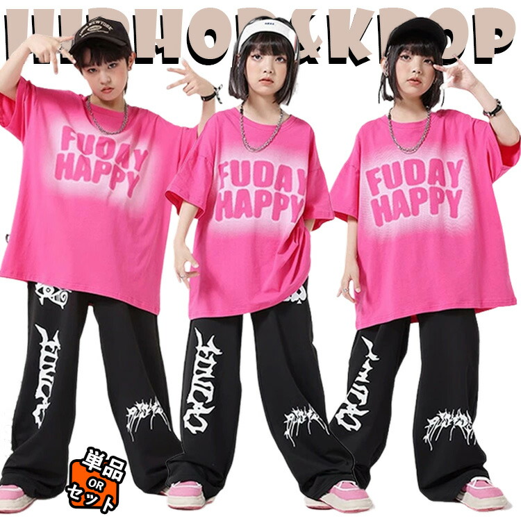 黒 ローズ シャツ スウェットパンツ キッズ ダンス衣装 半袖 女の子 男の子 上下セット セットアップ トップス パンツ カジュアルシャツ ヒップホップ ジャズダンス ポッピング 演