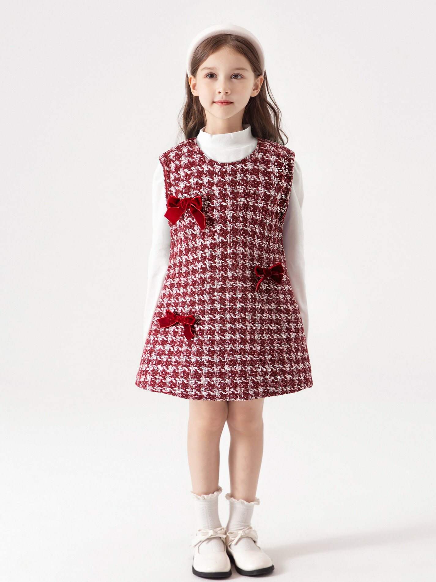"女の子 子供服 キッズ服 可愛い ジャンパースカート キッズ チェック ワンピース 厚手 リボン付き おしゃれ カジュアル 通学 七五三 入学式 卒業式 通園 発表会 普段着 秋冬 "