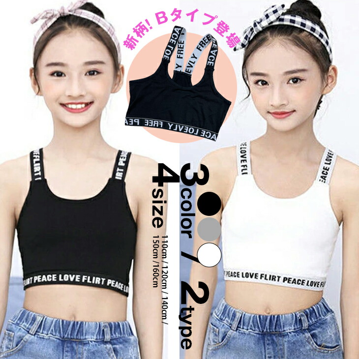 3カラー 7サイズ キッズ タンクトップ インナー へそ出し ブラック ホワイト グレー ダンス スポーツブラ ブラトップ 衣装 ショート丈