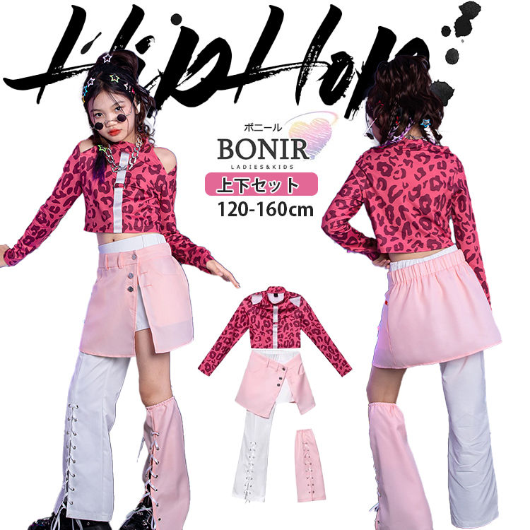 8サイズ ロングスリーブシャツ レオパード柄パンツ ヒョウ柄 襟付き 長袖 ホワイト 白シャツ キッズダンス ダンス衣装 ヒップホップ レッスン着 練習着 上下バラ売り