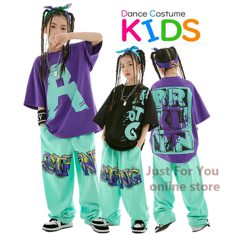 キッズダンス衣装 セットアップ 紫 黒 トップス 女の子 男の子 ヒップホップ 子供服 ダンス 衣装 キッズ パンツ ジャズ ストリート 原宿系 jazz hiphop 普段着もおしゃれ