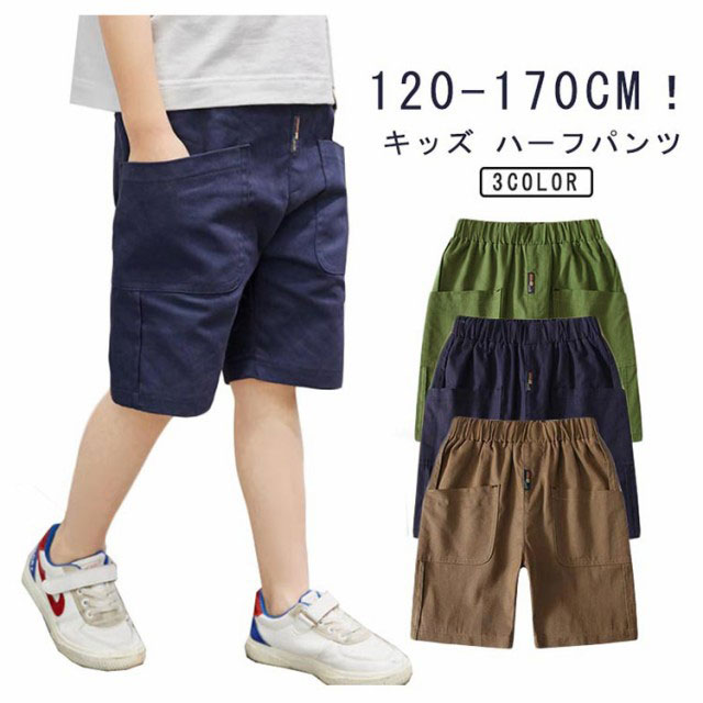 キッズ ハーフパンツ 春 夏 秋 短パン 半ズボン こども 男子 男児 夏服 通学 五分丈パンツ グリーン ベージュ ネイビー