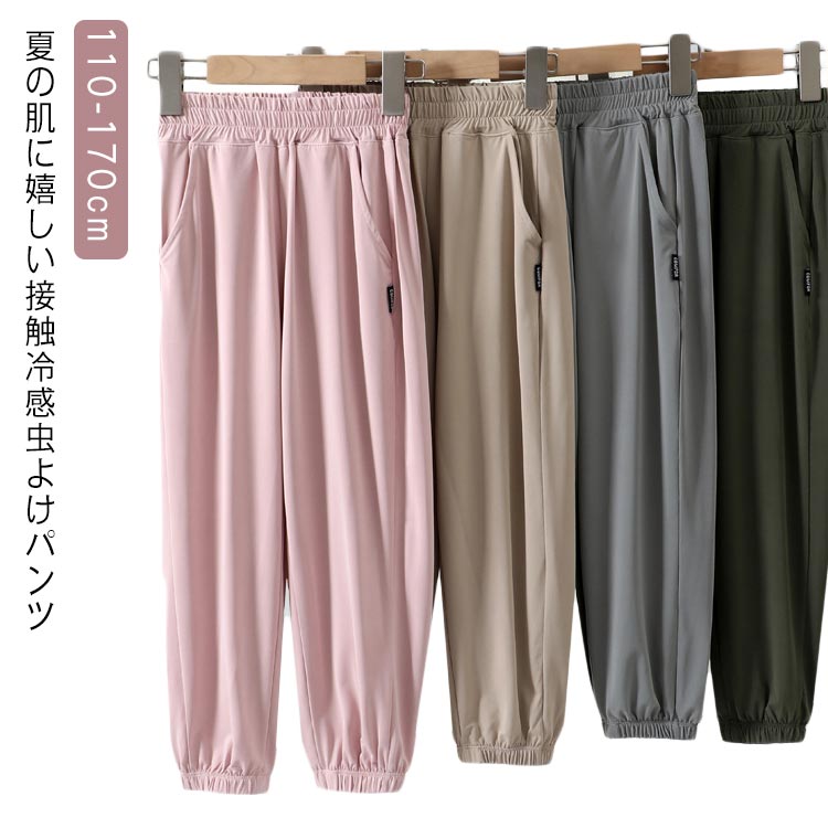 涼感 吸汗速乾 キッズ 涼しい 男の子 裾ゴム 紫外線対策 虫除け 通気性 ボトム 蚊 小学生 ウォーキング 女の子 パンツ 遠足 登山 キャンプ バーベキュー ガーデニング ロングパンツ 保育園 涼