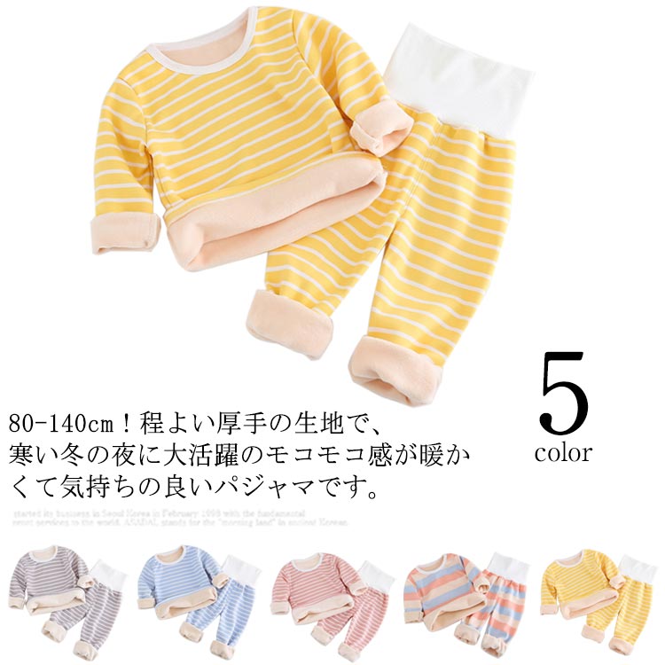 キッズ 裏起毛 肌着 あったかインナー 冬用 子供下着 ナイトウェア セットアップ 腹巻付き ハイウエスト 赤ちゃん ベビー服 ボーダー柄 シンプル