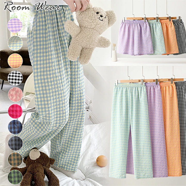 春 ルームパンツ 部屋着 ロング丈 ショート丈 秋 夏用 部屋着 ルームウェア ホームウェア ナイトウェア ワンマイルウェア ズボン 可愛い チェック柄 パンツ