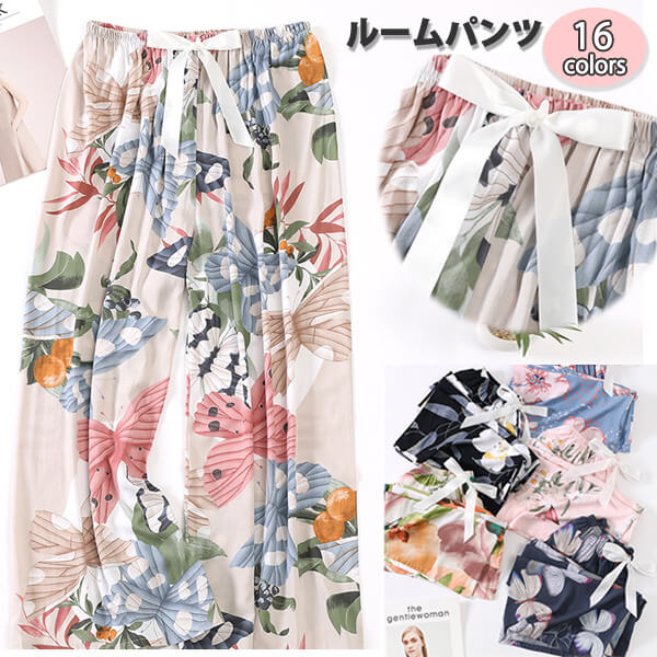2A29 ショート丈ルームパンツ 花柄 ルームパンツ レディース パジャマパンツ ズボン ルームパン レーディース
