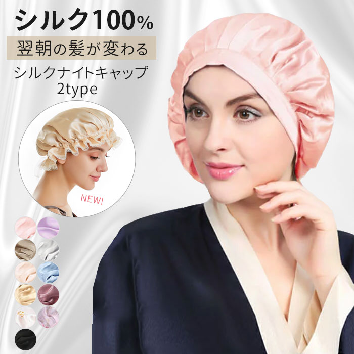 1B29 新タイプ追加 美髪 シルクナイトキャップ シルク100% 就寝用 ロングヘア ヘアキャップ パサつき予防 サイズ調整 絹 しるく 潤 ツヤ髪 ナイトキャップ shiruku siru シルク