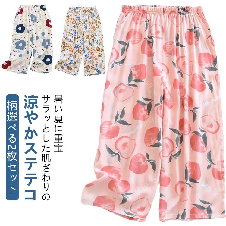 ステテコ レディース 九分丈 寝巻き 寝間着 ズボン パンツ 夏パンツ パジャマ ルームウェア イージーパンツ サラテコパンツ 長ズボン 総柄 女性 婦人 かわいい ワンマイルウェア