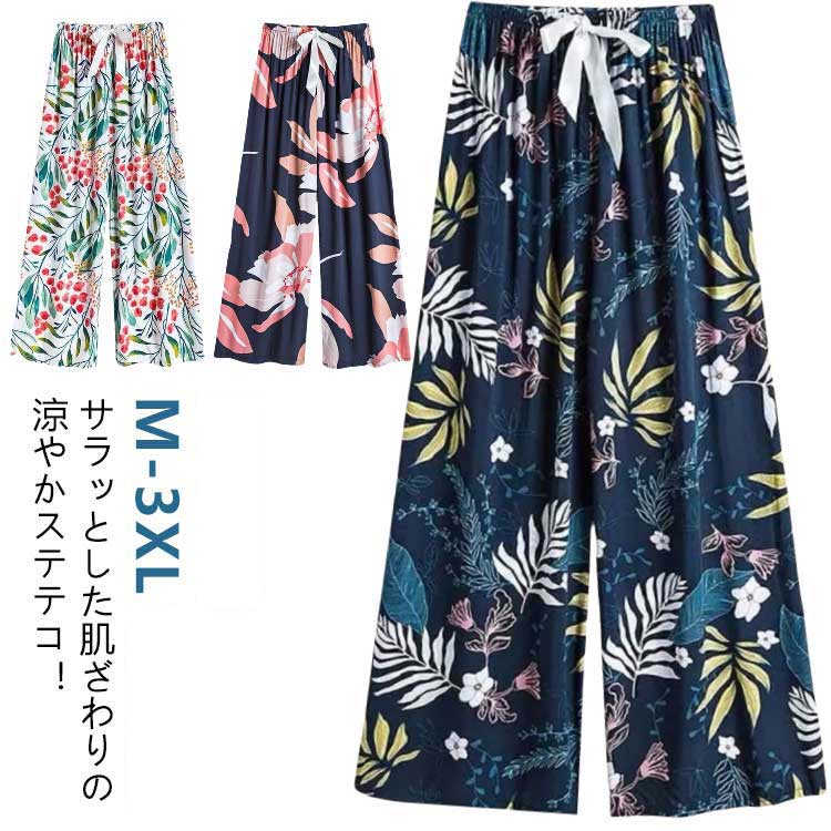 ワイドパンツ ステテコ きれいめ 綿 夏 9分丈 レディース ロング丈 夏用 秋 ロングパンツ ルームウェア 部屋着 冬 おしゃれ 花柄 上品 総柄 薄手 コットン 大きいサイズ 涼しい ルームパンツ
