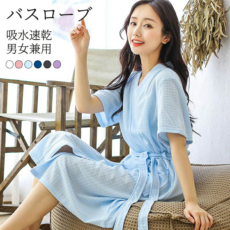 バスローブ レディース メンズ 夏 吸水 ワッフル生地 綿 カップル 男女兼用 ガウン ルームウェア 薄手 優しい肌触り ホテル お風呂上り 浴衣式 部屋着 バス用品
