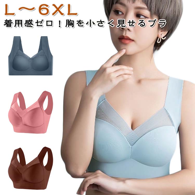ブラジャー ノンワイヤー 胸を小さく見せるブラ ブラ 背中 フルカップ 大きいサイズ 大きな胸を小さく見せるブラ 胸が小さく見えるブラ シンプル 脇肉 補正下着 小さく見 脇高