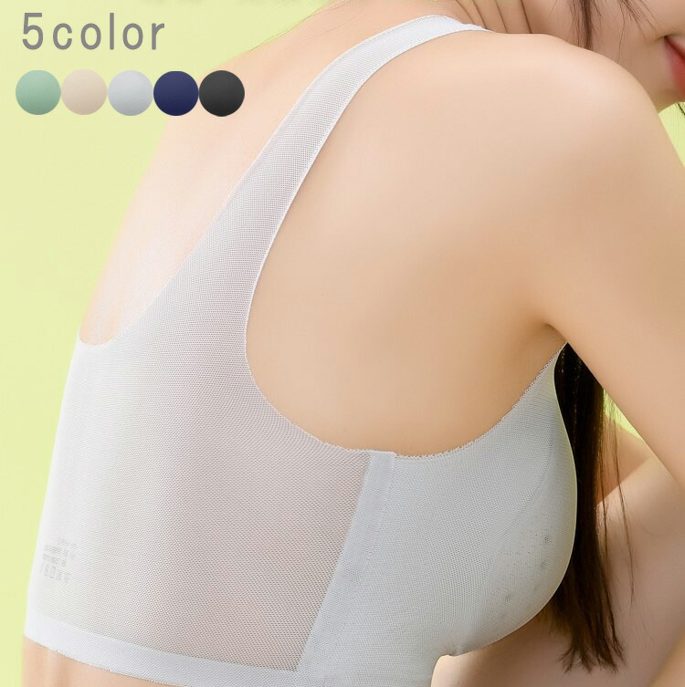 通気性 ノンワイヤーブラ 着けてることを忘れるブラジャー!締め付け感ゼロ クールブラ ストラップ メッシュ 無地 幅広 24時間 伸縮性 女性用 下着 夏 肩紐 夏用 おしゃれ 育乳 冷感