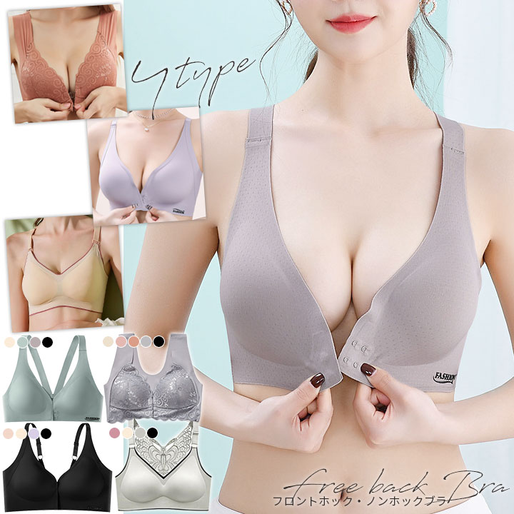 全8サイズ 前開きブラジャー ノンワイヤー 盛れる 無地 セクシー