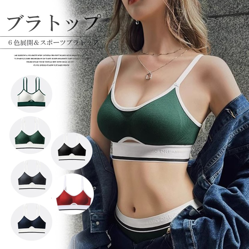 配色な色味の一着で気持ちも前向きに 6色展開 ブラレット ブラトップ スポーツブラ セクシー 見せブラ カップ付き 配色 ブラレット下着 ワイヤレス ブラジャー ランジェリー 肌着 ブラ