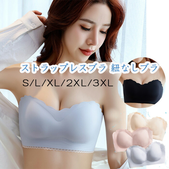 ストラップレスブラ 紐なしブラ 無重力感ヌーブラ・0アレルギー滑り止め加工・超盛りブラ・谷間メイクパッド チューブトップ 蒸れず 柔らかい ノンワイヤー