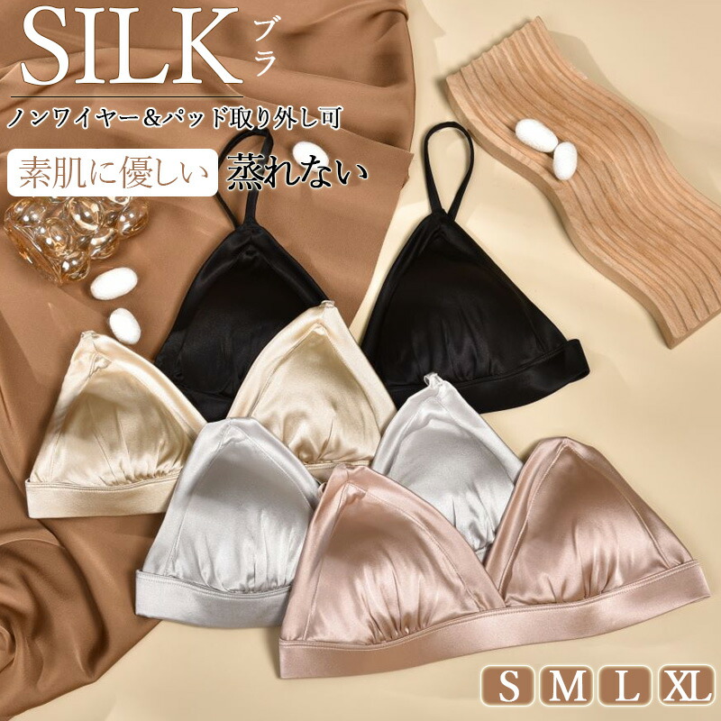 【送料無料】シルク ブラジャー ノンワイヤー 小胸 おしゃれ 無地 女性 インナー ナイトウエア ムレない 4色 カップ、 カップ、カップ、カップ 女性用 婦人用