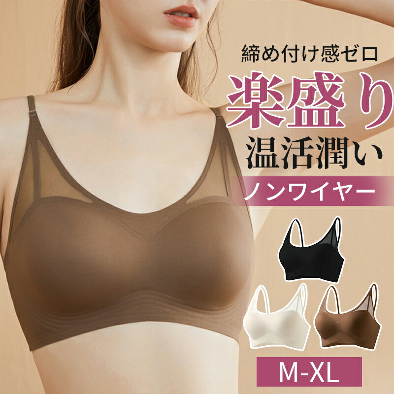 【送料無料】ブラ ブラジャー 締め付け感ゼロ カップ カップ 軽量 3/4カップ シームレス ヨガ 運動 スポブラ おしゃれ ワイヤーなし ベージュ 肌色 コーヒー