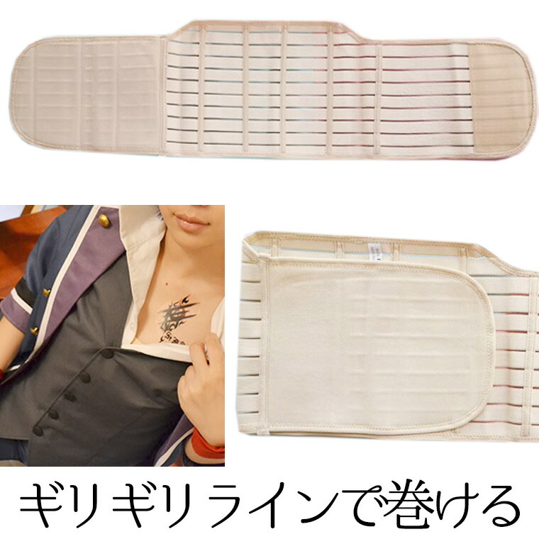 ギリギリラインで好きな強度で巻ける 胸を小さく見せる シェイパー ナベシャツ コスプレ 男装 サポート サポーター インナー 胸つぶし サラシ さらし マジックテープ 補正下着