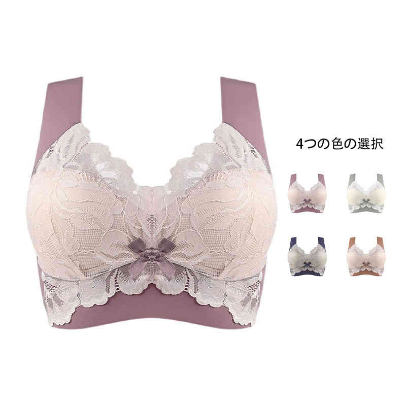 胸を小さく見せるブラ ノンワイヤーブラ 胸元スッキリ 着痩せブラ 締め付けない 痛くない レース 伸縮性