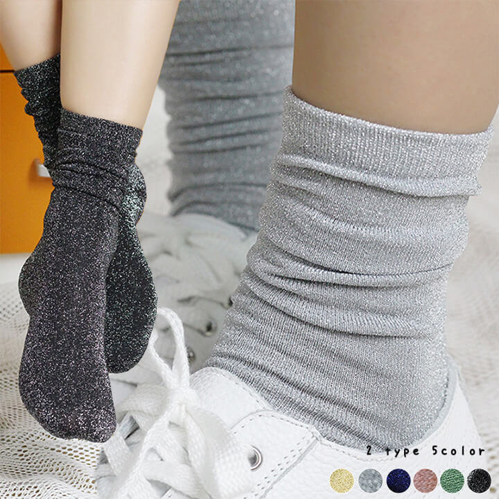1B8 ラメ入りリブクルーソックス 22.5~25cmショートソックス 靴下 レディース セット コットン おしゃれ カジュアル バーゲン 可愛い