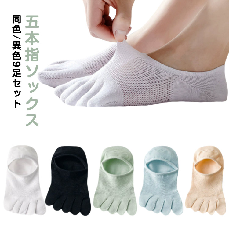 同色 異色9足セット 浅い 靴下 夏用 レディース メッシュ 吸汗 脱げない 五本指ソックス 無地 フットカバー 綿 コットン 薄手 楽ちん スニーカーソックス 見えな 滑り止め