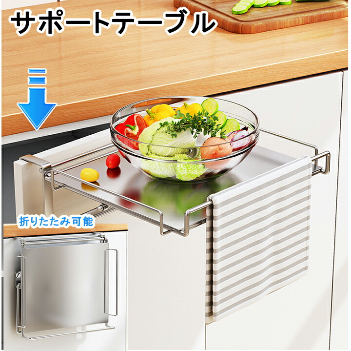 1B29 サポートテーブル 折りたたみ キッチン用品 タオル掛け 作業台 サポート 錆びない コンパクト スリム ステンレス キッチン 台所 キッチンの 便利グ 狭い