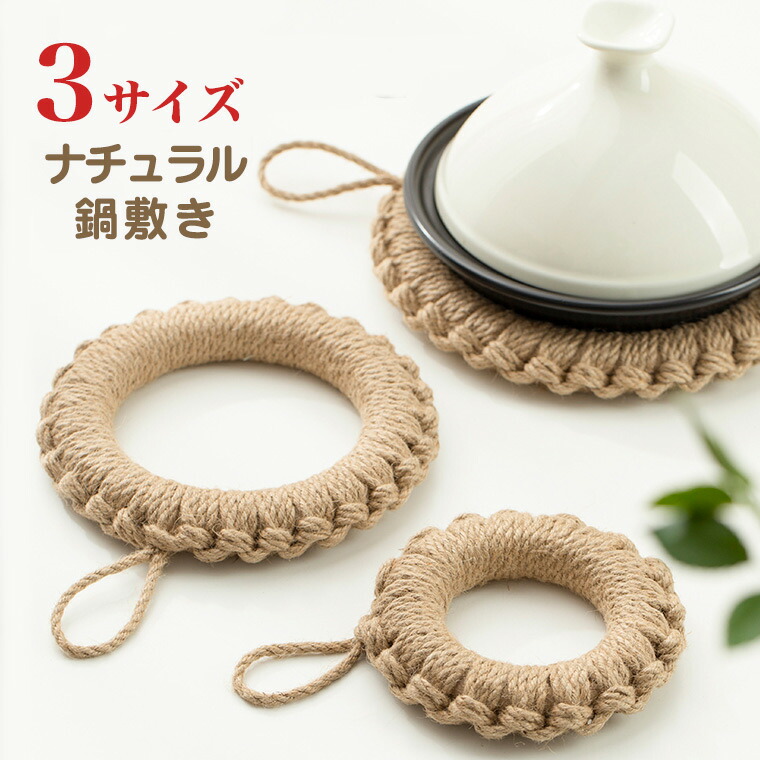 自然素材 レトロで新しい ジュート編み 鍋敷き 1個 ナチュラルデザイン ナチュラル フック付 麻 リネン キッチン タジン鍋 敷き ポット ティーポット オーブン皿 丸型 丸 円 ドーナツ