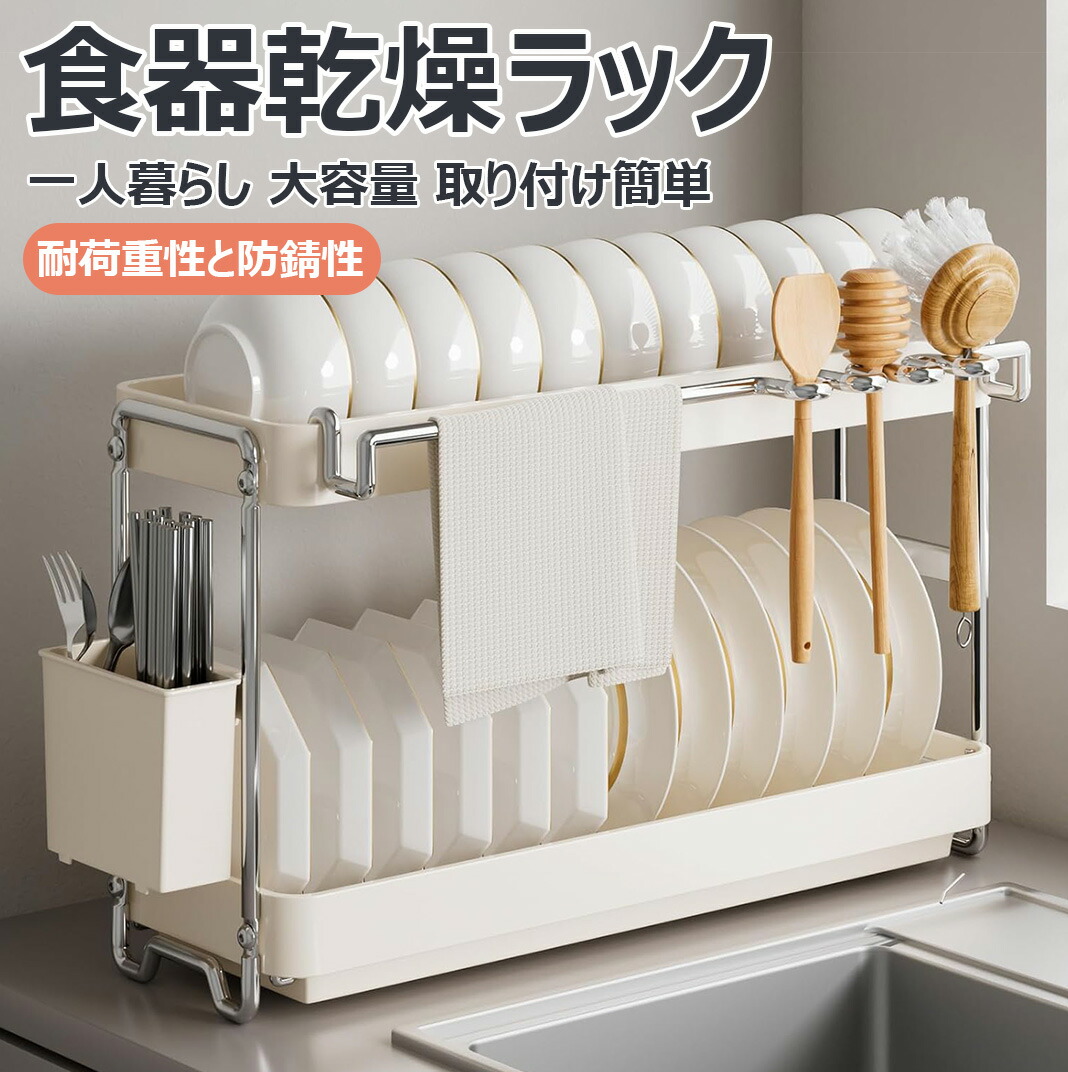 食器乾燥ラック 食器水切ラックスリム 2段 キッチン シンクサイド水切ラック 一人暮らし ディッシュラック ステンレス鋼