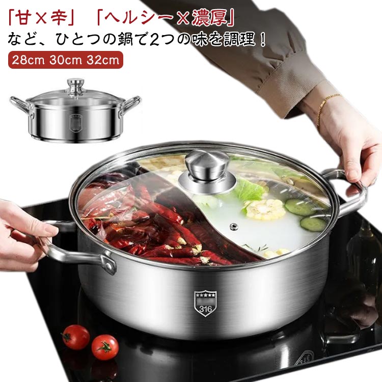 火鍋用 直火対応 二味鍋 2槽火鍋 しゃぶしゃぶ鍋 仕切り鍋 ガラス蓋 しゃぶしゃぶ鍋キッチン用品 食器 調理器具 鍋 フライパン 鍋 両手鍋