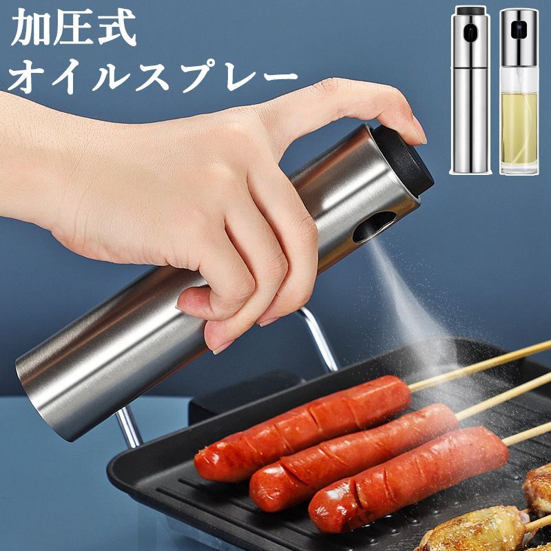 加圧式オイルスプレー オイル入れ キッチンオイルスプレー ヘルシー カロリー サラダ パスタ 焼肉 油 噴霧 選べる2タイプ 透明 ステンレス ガラス キッチン用品