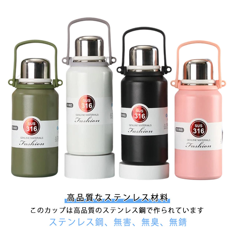 900ml 洗いやすい 大人 キッズ 保温ボトル コップ付き スポーツ ステンレスボトル 真空二重構造 1200ml マグボトル 魔法瓶 肩掛け 水筒 こども スポーツジャグ 保冷 軽量